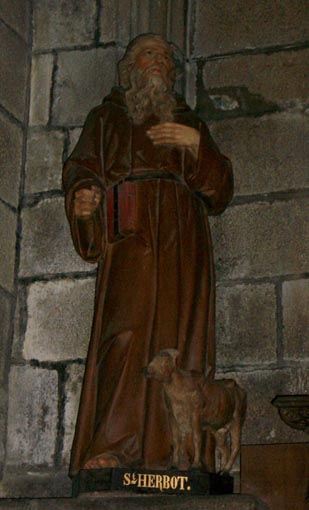 St. Herbot, Hölzerne Figur mit Gürtelbuch